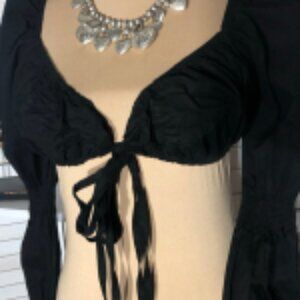 NWOT Halfheart Boho Cropped Top Self-Tie Front Ruched Puff Long Sleeve Black L