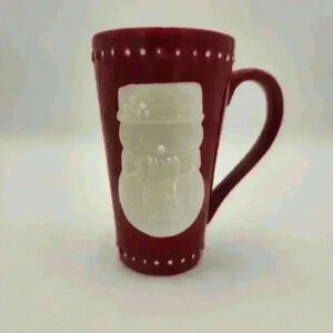 NWOT Hallmark 3D White Snowman Deep Red Tall 16 Oz Mug Dishwasher Microwave Safe