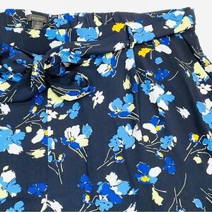 NWOT Halogen Navy Floral Plus Size Tie Waist Wide Leg Crop Capri Pants