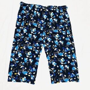 NWOT Halogen Navy Floral Plus Size Tie Waist Wide Leg Crop Capri Pants - size 3X. w 24" inseam 23"