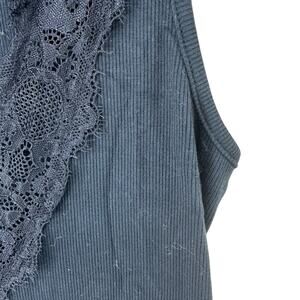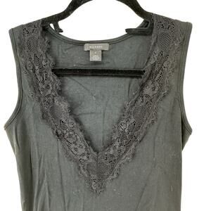 NWOT Halogen Peek-a-boo v neck lace trim ribbed tank top in black womens small