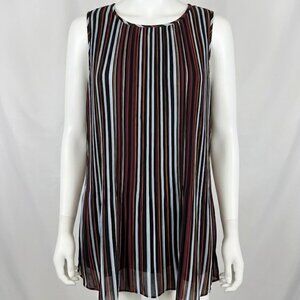 NWOT Halogen Women's Black Orange Striped Pleated Tunic Blouse