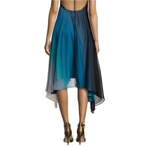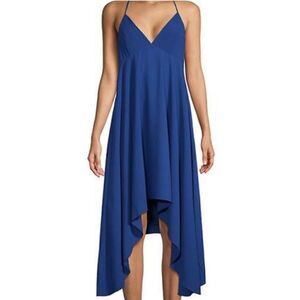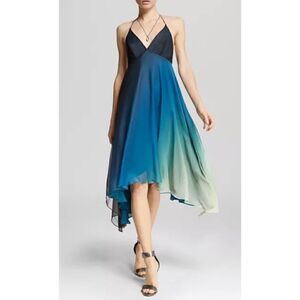 NWOT Halston Heritage Blue Halter Neck Crepe Asymmetrical Handkerchief Hem Dress