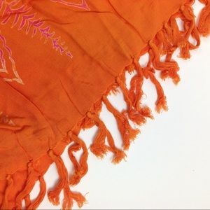 Vibrant soft rayon scarf. Would make a great sarong. Brand new. Hand made. 100 rayon. Hand wash. Tassels on ends. 44.5" wide. 61" long