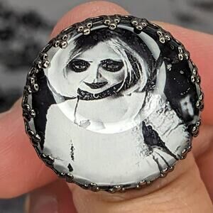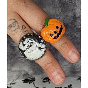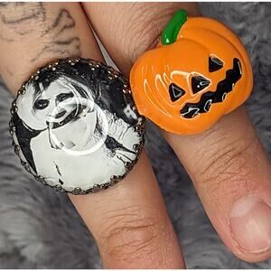 In excellent condition. Brand new, never worn. Two adjustable rings that feature Tiffany from Bride Of Chucky and a traditional Jack-O-Lantern Pumpkin.