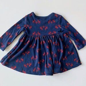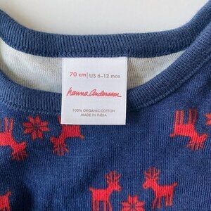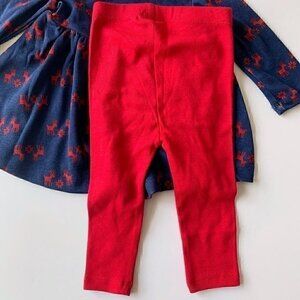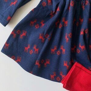Beautiful organic cotton baby girl dress and leggings. Navy dress with red reindeer print dress and red leggings. Perfect holidays outfit! New without tags, Smoke free home, no pets.