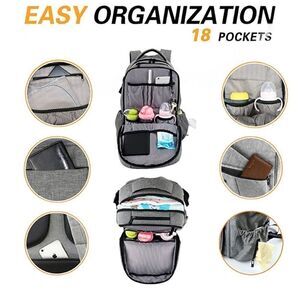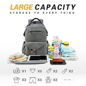 NWOT Hap Tim Multi-Function Large Baby Diaper Bag Backpack GREY FREE GIFT