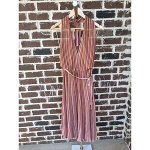 NWOT Happy Sheep Lurex Italian Pleated Halter Neck Midi Dress Size Small