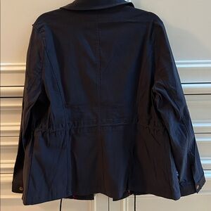 NWOT. Has ties that can cinch or can be worn open. Cute detailing down the inside middle. Snap closures and zippered pockets.