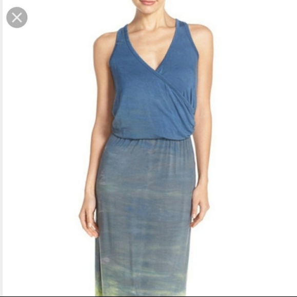 Brand new! Hard Tail Tie Die Maxi Dress - Medium. Super soft fabric. Wrap front. Elastic waist. Top of dress starts blue and goes to bright green at the bottom. Super Cute! Pit to pit 15.5". Waist (unstretched) 12.5". Back to hem 61". Stock photo property of Hard Tail.