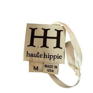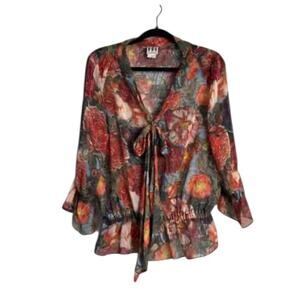 NWOT Haute Hippie 100% Silk Sheer Floral Blouse Ruched Hem Tie Neck Size Medium