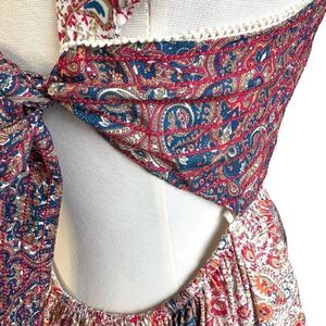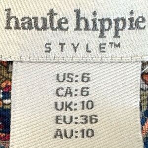 NWOT Haute Hippie Flutter Sleeve Embroidered Crochet Bohemian Print Open Tie Bac