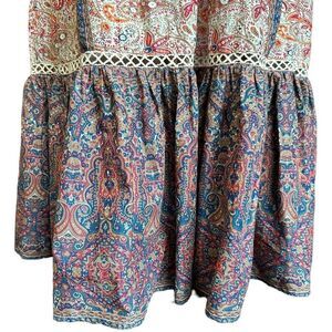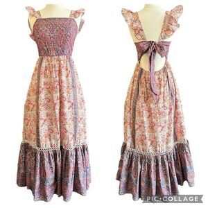 Haute Hippie Fairy Garden Cottagecore Praire Flutter Sleeve Embroidered Crochet Bohemian Print Open Tie Back Midi Dress New Without Tags (Hang Tag Fell Off) Size 6
