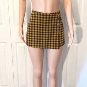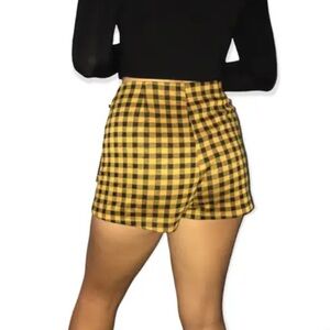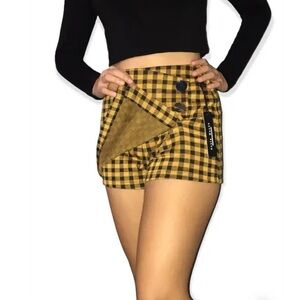 NWOT Haute Monde Womens Yellow Plaid High Waist Skort Skirt Size Medium