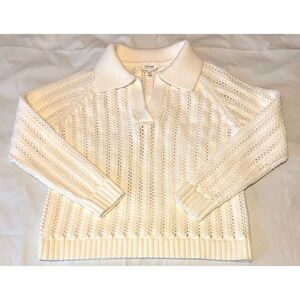 NWOT Haven Well Within Open Stitch Johnny Collar Sweater, White, Sz S