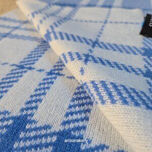NWOT Hawico Cashmere Double Knit Blue & White Plaid Luxury Scottish Cashmere