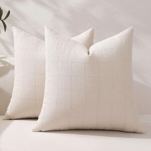 🛋️ NWOT Hckot Checkered Linen Blend Throw Pillow Covers 20" Set of 2