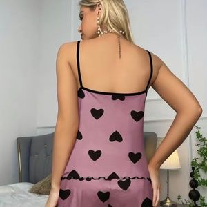 Tank & shorts pj set. Scoop neck cami top & lettuce trim shorts. Pink with black hearts. Brand new, never worn!