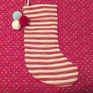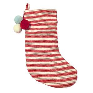 NWOT Hearth & Heart Magnolia Holiday Christmas Stocking Pom Horizontal Stripe
