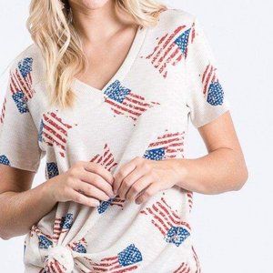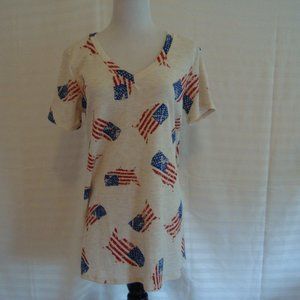 A nice short sleeve v-neck waffle tee with the American flag print top. Relax fit. Runs large. Size 2XL New without tags.