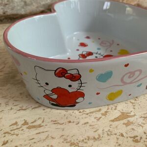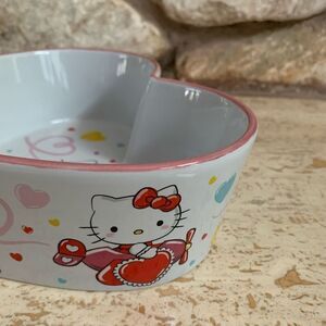 Nwot hello Kitty Valentine’s Day bakeware heart shaped baking dish. Hello kitty hugging a heart design with hello kitty in a plane in the side.