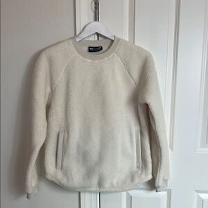 Perfect! Tags cut, never worn. So soft and warm. Pockets on sides do all the way through (like a hoodie front pocket). Smoke free / pet free home.