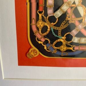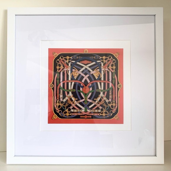 Hermes cavalcadour 3D style print. In a frame that measures just under 13”x 13”. Has the hanging hook on the back. The dynamic print is by Hermes, the frame is not.