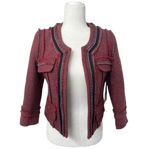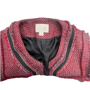 NWOT Hinge Wool Jacket. Size Small. Colors are red and gray with back accents. Super cute jacket! There are no buttons or zippers in the front, so this is an open jacket. Pockets are nonfunctional. Measurements are in pics, however additional measurements available upon request.