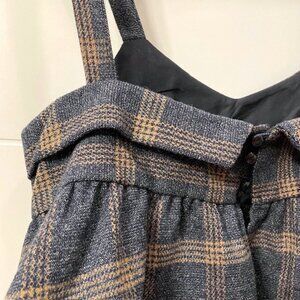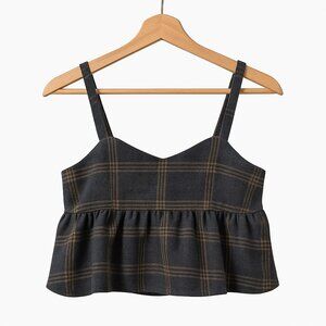 NWOT Hüming Plaid Babydoll Peplum Cropped Tank Top Dark Academia