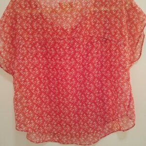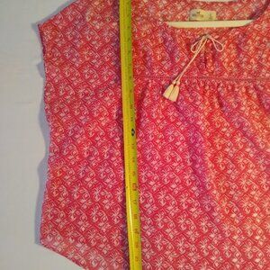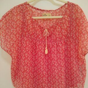 NWOT Hollister L 100% polyester bright coral-hot pink-white top