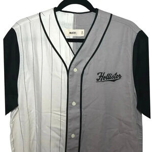 NWOT Hollister Men’s Button Down Baseball Jersey Shirt Gray White Black Size M