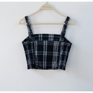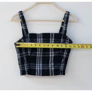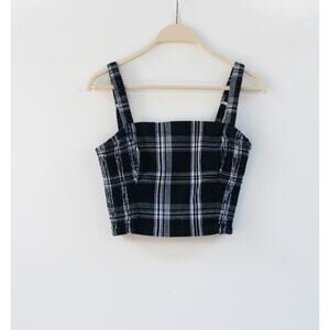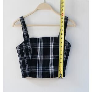 NWOT Hollister Women's Black White Plaid Mini Crop Top Smocked M