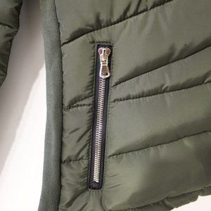 Sleeve (shoulder seam to cuff) & width (mid section side 2 side)? Fabric? Filler? Is the hood removable? Is the fit true to size=women’s Small? Thank you!