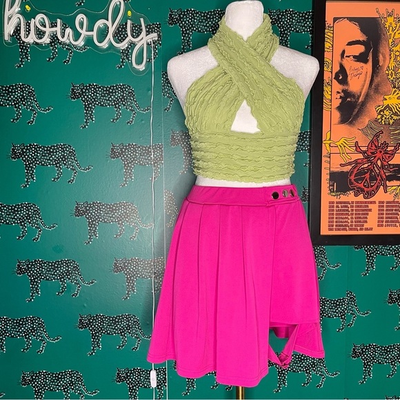 NWOT Hot Pink Barbie Core Punk Mini Skort with Adjustable Thigh Buckle Size M
