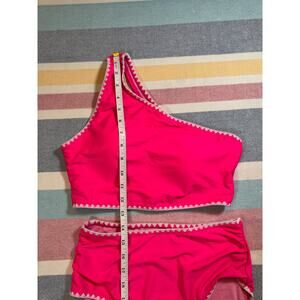 NWOT, Hot Pink One Shoulder Embroidered Bikini, Size Small