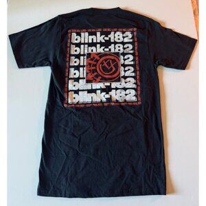 Features/Description: Black t-shirt. Front of the shirt has Small Blink 182 graphics on the chest. Back of the shirt has large Crappy Punk Rock graphics on it.