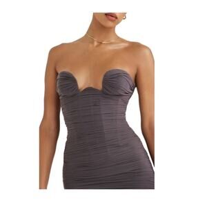House of CB Cindy Strapless Corset Ruched Gathered Grey Bodycon Dress