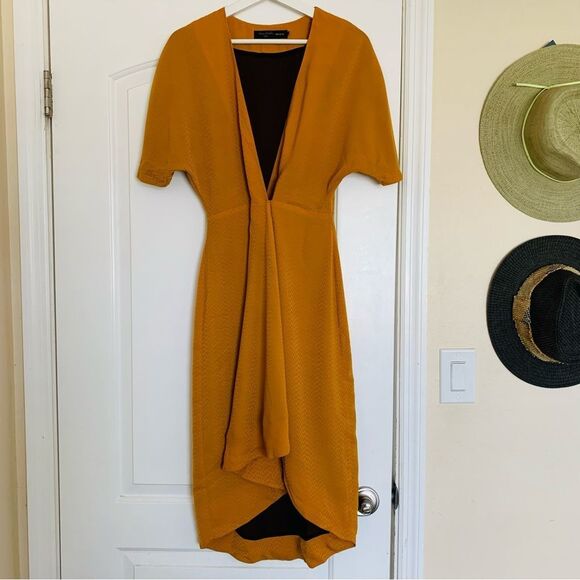 NWOT House of Harlow 1960 x REVOLVE Romina Midi Wrap Dress | S | Golden Mustard