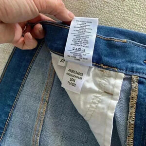 Tags Hudson jeans, Blair jeans, high-rise jeans, distressed jeans, super skinny, ankle length, size 29, NWOT, trendy denim, casual style, edgy fashion, streetwear, modern fit, stretch denim, classic blue jeans, fitted silhouette, stylish, versatile