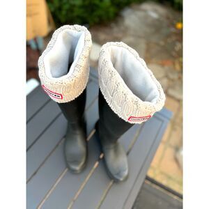 NWOT Hunter Tall Cable Knit Cuff Rain Boot Wellies Socks SZ L = US Wmns SZ 8-10