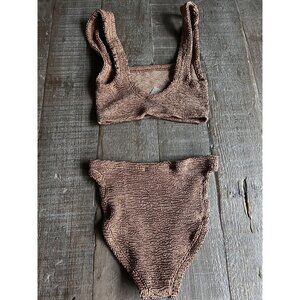NWOT Hunza G Xandra metallic cocoa Bikini Set size OS