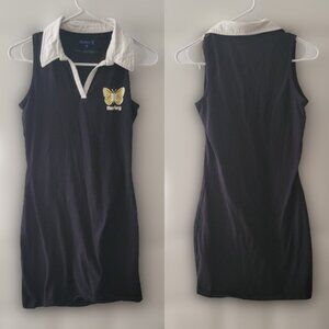Black sleeveless athletic dress with butterfly design and white collar. Comfortable, soft, and fitting, 95% cotton 5% spandex. Never worn!