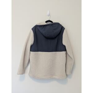 NWOT Hurley Half Zip Sherpa Anorak Pullover Hooded Jacket Sz L Blue Cream Bone