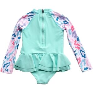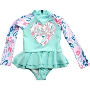 NWOT Hurley One-piece Rashguard Skirted Swimsuit Long-sleeve Turquoise 2T
