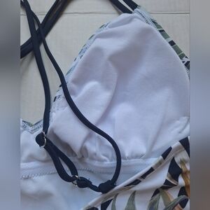 NWOT Hurley Womens One Piece Palm Print Swimsuit Criss Cross Straps adjustable straps built-in bra with padding no underwire V neckline Semi cheeky Size L