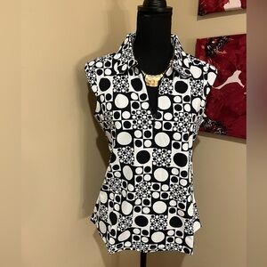 NWOT IBKUL ELISE BLACK & WHITE Sleeveless Polo Golf Shirt