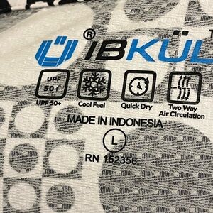 It has a zip placket a polo collar. The ICE FIL fabric is 92% Nylon 8% Polyurethane which is designed to keep you cool. It is soft and stretchy, wicks the moisture from sweat, has 50+ UPF sun protection, is fast drying and retains it shape after washing.