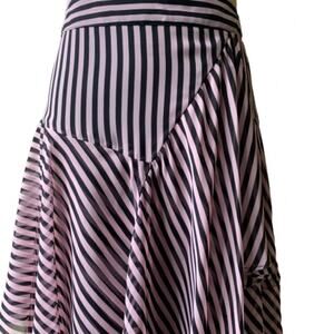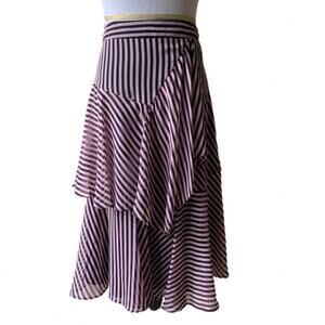 NWOT INC International Concepts women’s pink and black striped tiered skirt with asymmetrical hem. Size 4. The tiering and asymmetrical cut create a wonderful feminine swing. Nice quality and fully lined. Side zipper. New without tags and never worn. Has a small pinhole where tag was attached to side seam near waistband as shown in last photo. Otherwise in great condition.