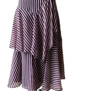 NWOT INC International Concepts Pink and Black Striped Tiered Skirt. Size 4