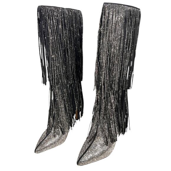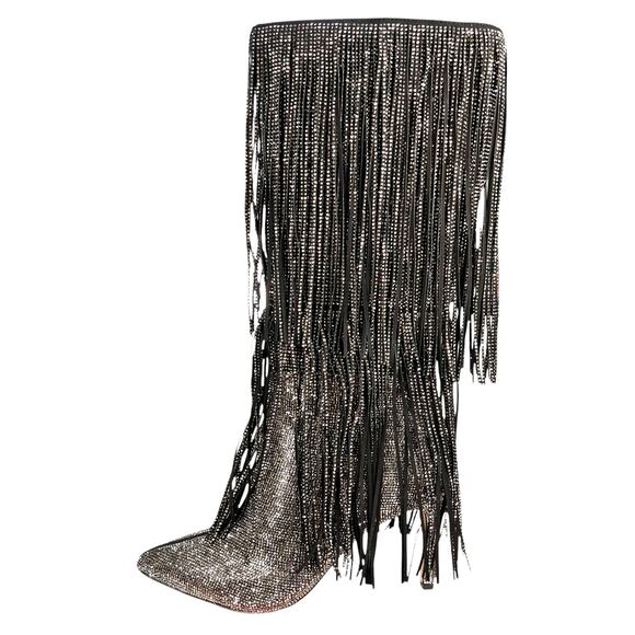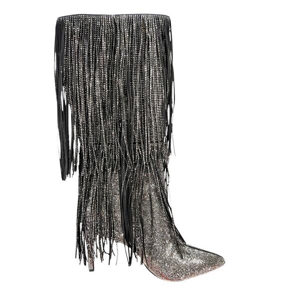 Elevate your boot game with these INC rhinestone fringe boots. Featuring a silver black rhinestone design, these boots are perfect for women who want to add a touch of flair to their wardrobe.